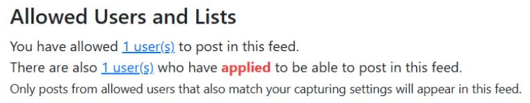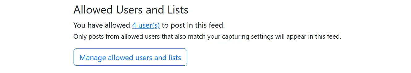 Now, go to the feed you want to use the starter pack. If it’s a brand new one just for this starter pack, you will need to create it. First, set the feed to only capture posts from specific users, then save the feed settings: