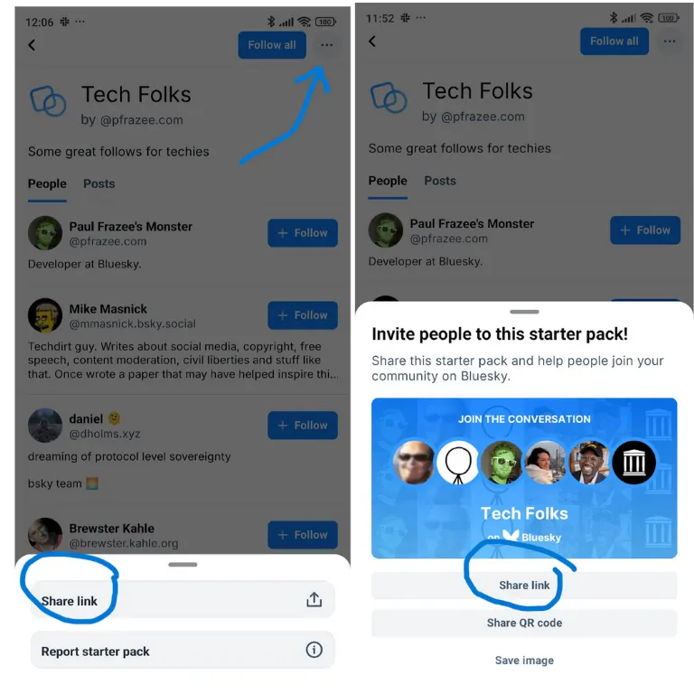 Section titled “Bluesky on a phone app”Click on the three dots menu, on the bottom right of a post.