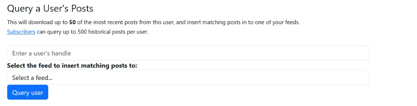 Section titled “Advanced Usage”If you are running a restricted feed, you may get questions from people who want to know if they can post in the feed or not. You can add a special shortcode to your public description page. People can then enter their Bluesky handle in a special box to check whether they can post in the feed, without having to ask you.