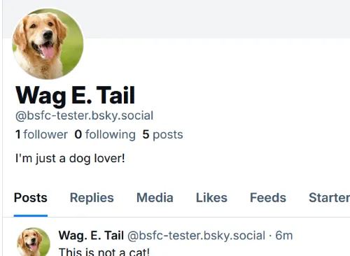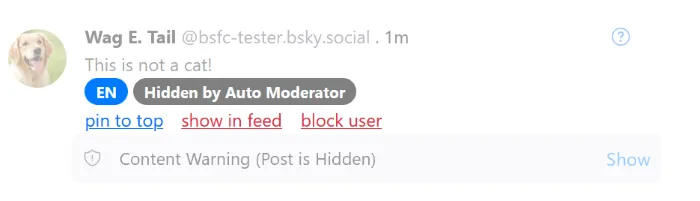 Because of the term ‘dog lover’ in Wag E. Tail’s bio, his posts are automatically hidden in the feed.